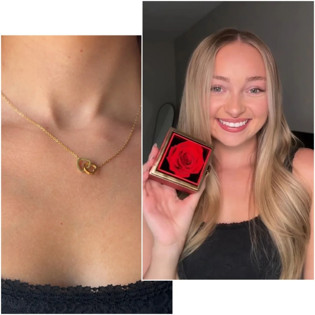 La rosa eterna con collana a due cuori è la massima espressione di amore e affetto.